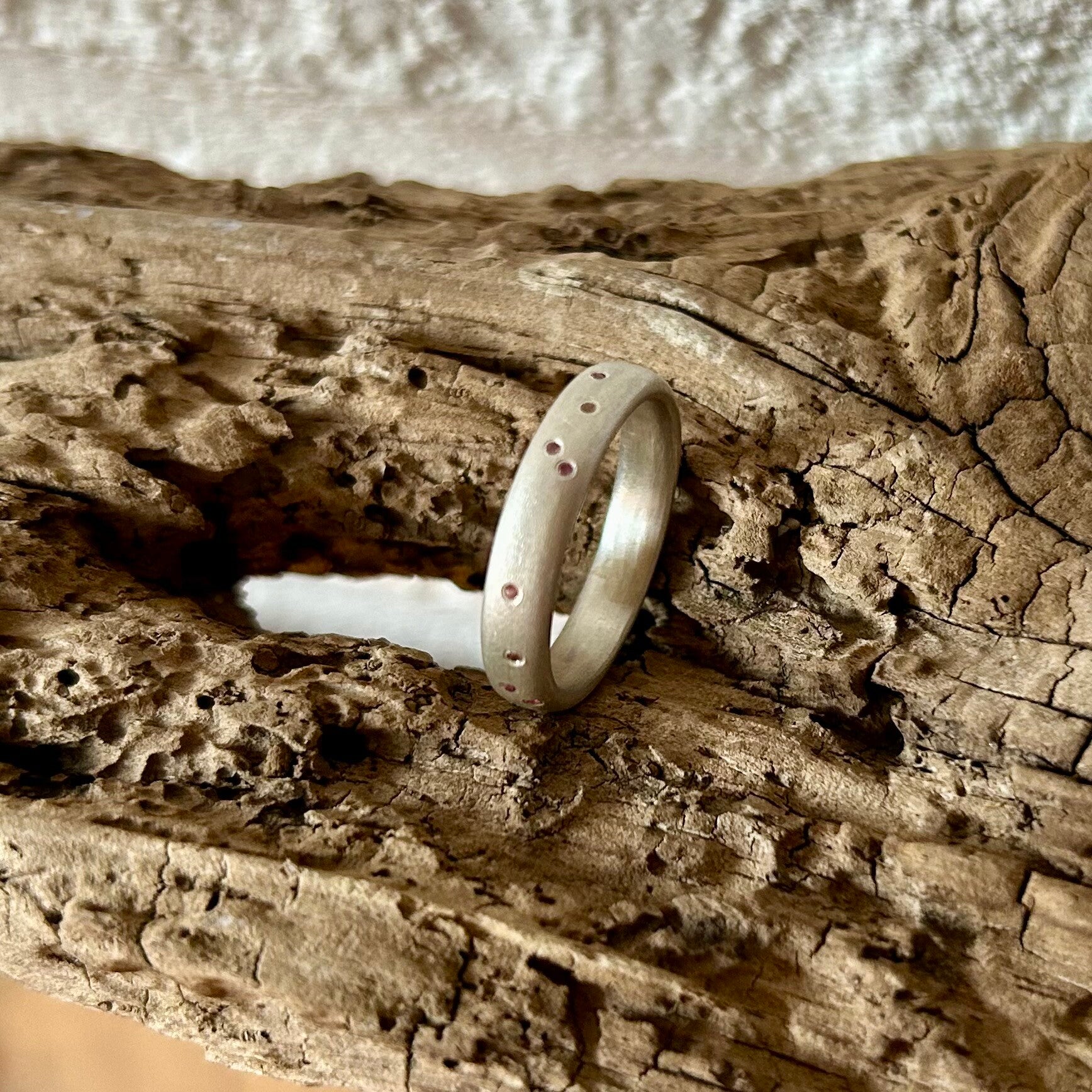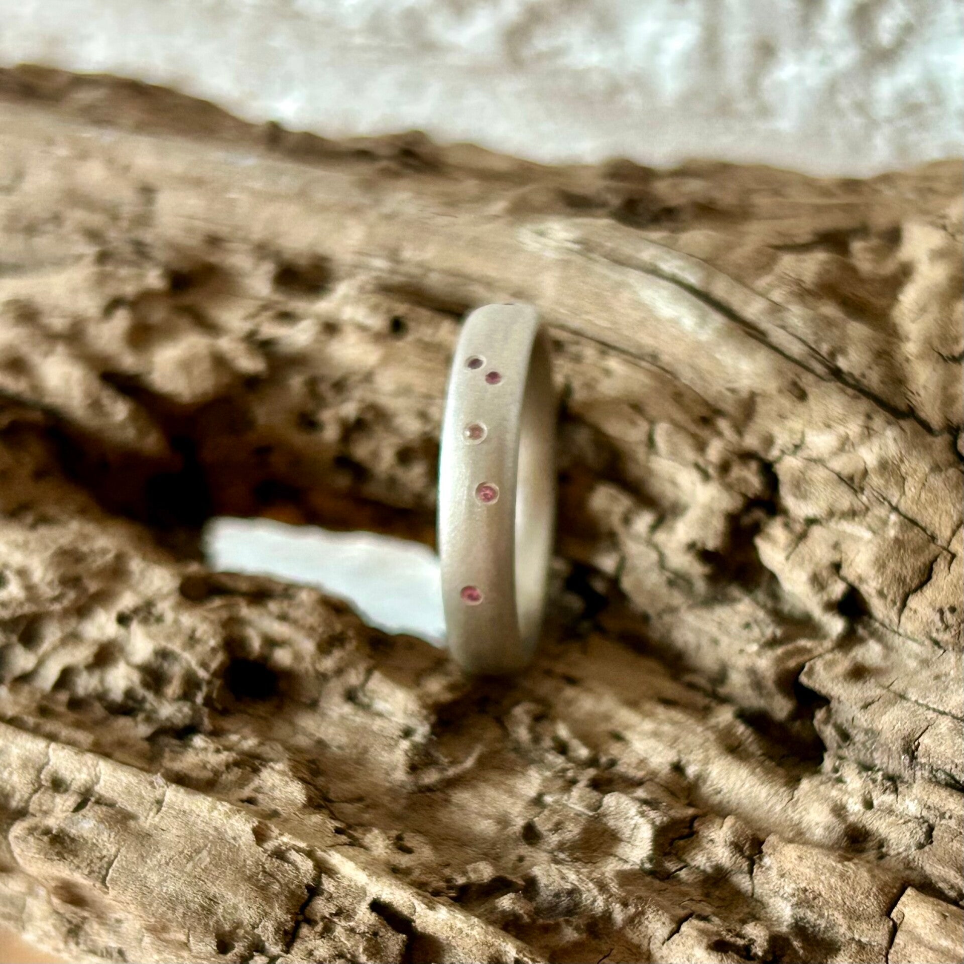 Product Information: 4.2mm wide oval Sterling silver band15 x 1mm pink and champagne sapphires